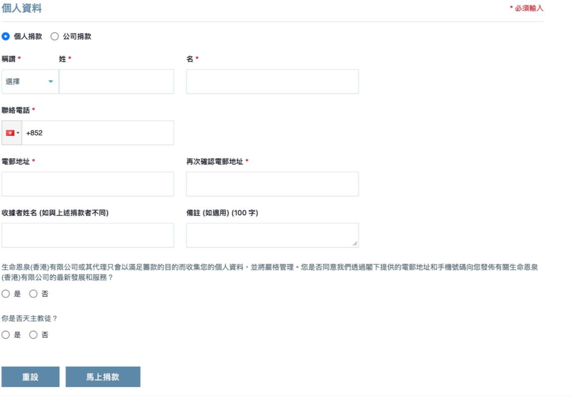 1. 進入《生命恩泉》香港「一次性捐款」網頁 https://donate.fllhk.org/donation-form?donor_frequency=One-off&lang=tc