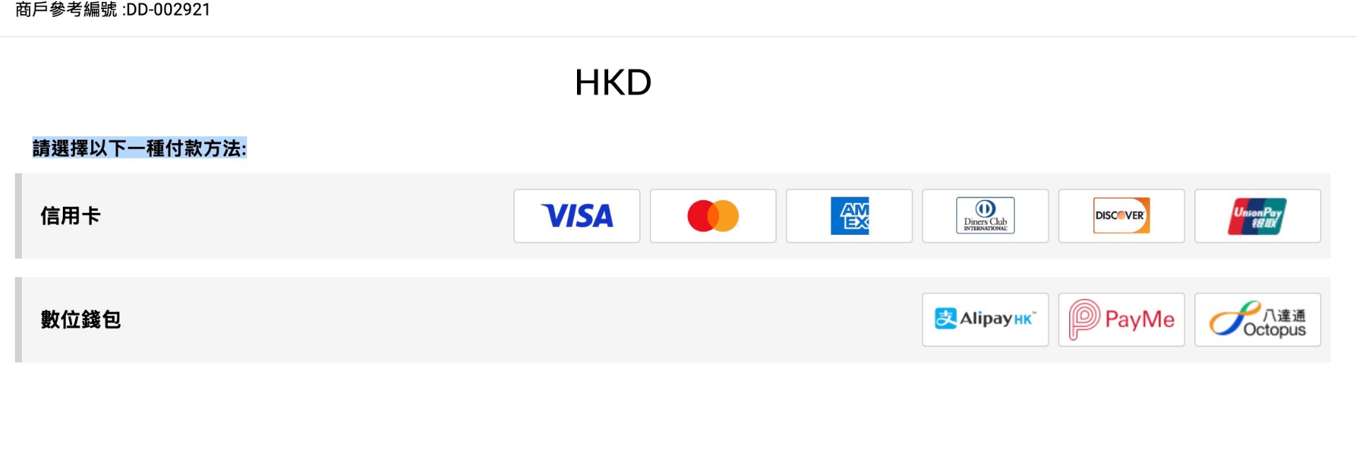 6. 選擇付款方式(信用卡、轉數快等)。